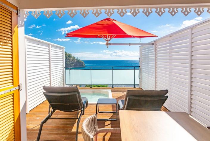 Nur wenige Schritte vom Bain du Curé entfernt liegt das 4‑Sterne‑Hotel Les Galets Rouges auf der Insel Basse-Terre in Guadeloupe, einem französischen Überseegebiet in der Karibik. Inmitten der tropischen Natur von Bouillante gelegen, bietet das Hotel einen atemberaubenden Blick auf die Îlets Pigeon und die türkisfarbene Karibik. Der elegante, ruhige Stil des Hauses lädt dazu ein, Momente der Entspannung direkt am Wasser zu genießen.