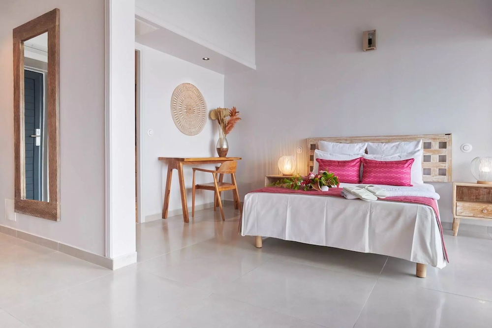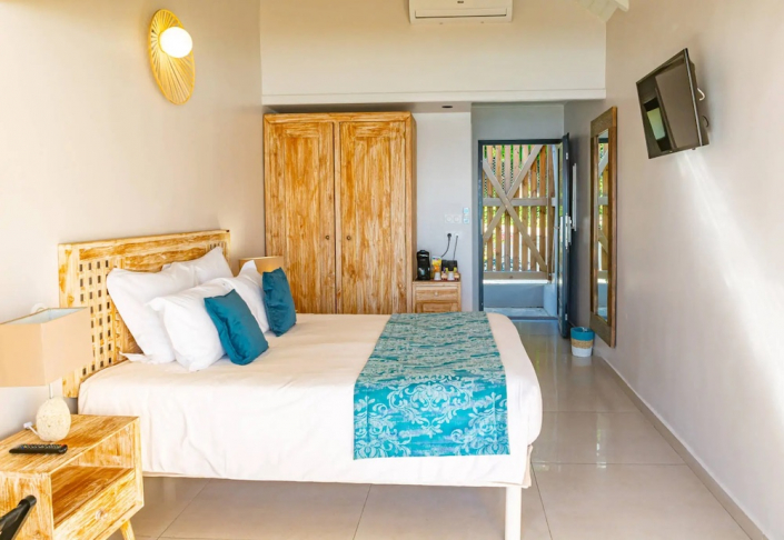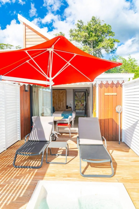 Zimmer Supérieure – Die Zimmer der Kategorie Supérieure bieten auf mindestens 42 m² ein komfortables und ruhiges Ambiente. Mit Klimaanlage, privater Terrasse und eigenem Bassin eignen sie sich ideal für erholsame Tage in tropischer Umgebung.lesgaletsrouges+1