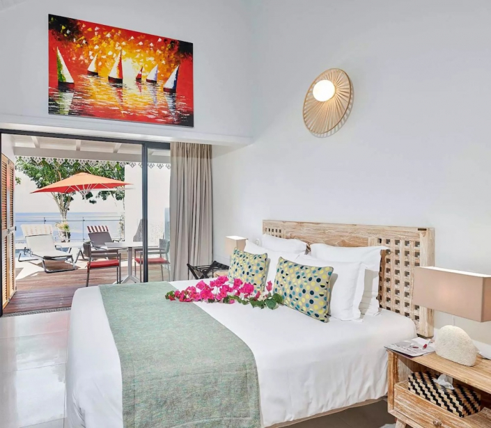 Suite – Die Suites sind die großzügigste Kategorie und bieten besonders viel Platz. Sie verbinden hochwertige Ausstattung mit dem typischen tropischen Stil des Hauses und einem weiten Blick auf die Umgebung.